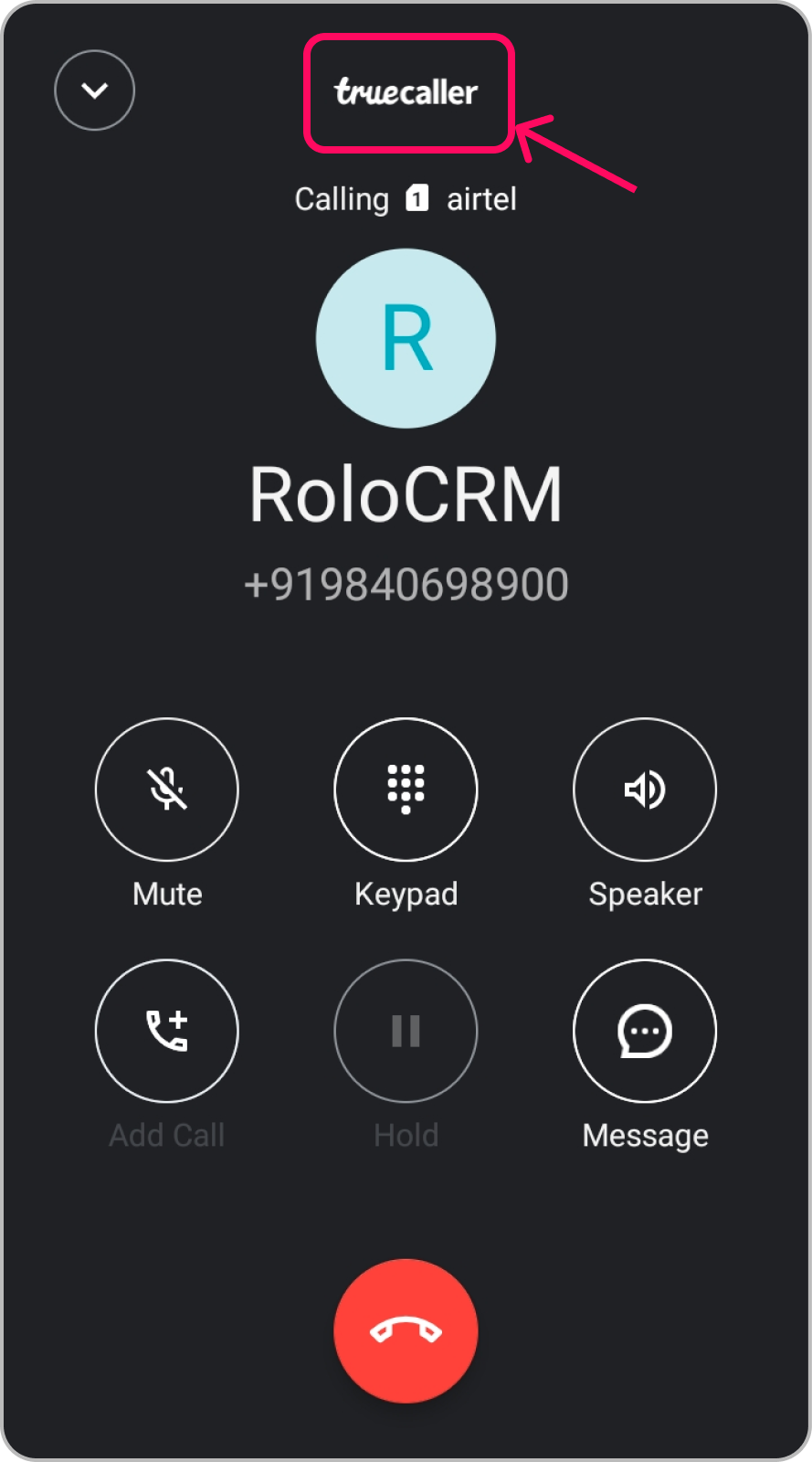 If Truecaller is the default calling application, you will see the following screen whenever you make or receive a call. Note the name 'truecaller' on the top of the screen.